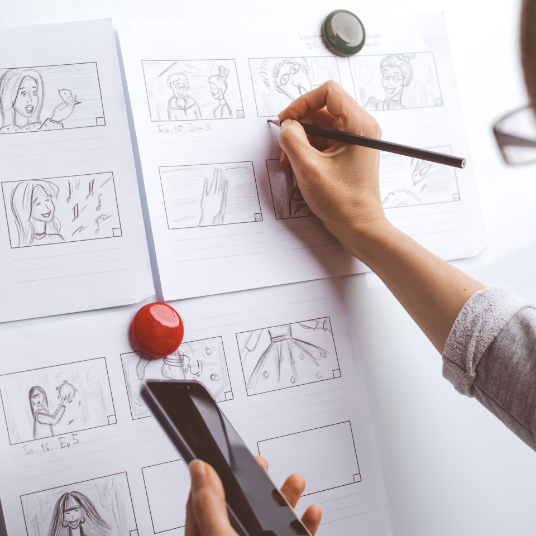 We will help you find the perfect words to shape your story. Our creative team takes a collaborative approach, working with you to craft the necessary content and behind-the-scenes design work to prepare your idea for the filmmaking process.